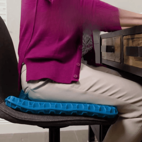 El cojín de gel ErgoSoft™️ lo hace posible gracias a su avanzada estructura de gel elástico que elimina suavemente la presión de la espalda, las caderas, el coxis y los nervios ciáticos, mejorando la postura y eliminando el dolor que se produce al pasar muchas horas sentado.